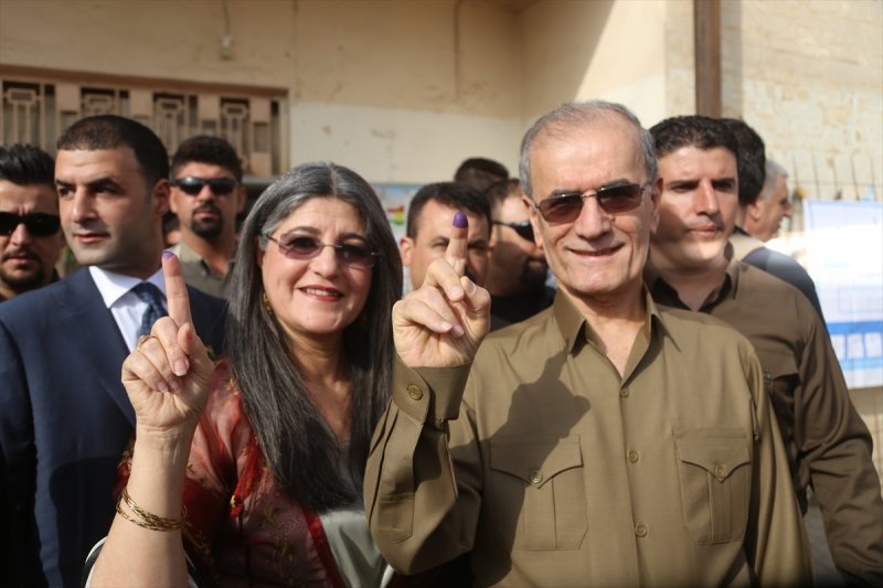Irak parlamentosu tarafından görevinden alınan eski Kerkük Valisi Necmettin Kerim (sağda), Irak Federal Mahkemesinin anayasaya aykırı olduğunu ilan ettiği Irak Kürt Bölgesel Yönetimi\'nin (IKBY) referandumu için Kerkük\'teki Garmiyan İlkokulun\'nda oyunu kullandı.