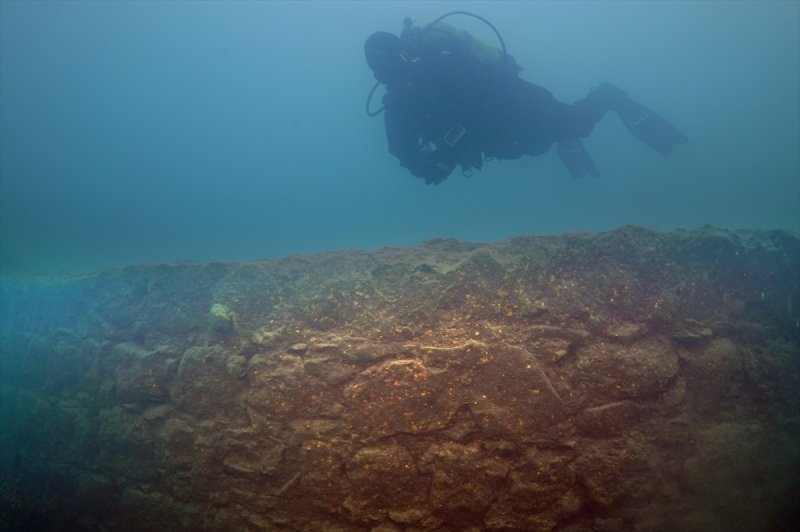 Adilcevaz Kaymakamlığı ve Van Yüzüncü Yıl Üniversitesince (Van YYÜ) yürütülen çalışma kapsamında ekibiyle gölde dalış gerçekleştiren su altı görüntüleme yönetmeni Tahsin Ceylan, Adilcevaz Kalesi'nin kalıntısı olduğu değerlendirilen tarihi bir yapıyı görüntüledi.