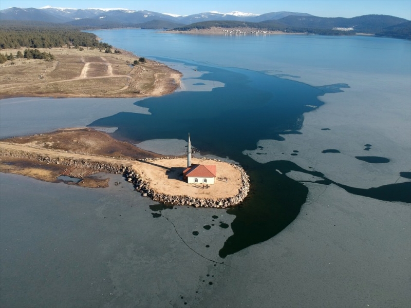 Bolu'da 2011 yılında tamamlanan Seben Gölü'nün ortasında kalan ve 2 yıl süren çalışmaların ardından ibadete açılan cami, misafirlerini bekliyor.