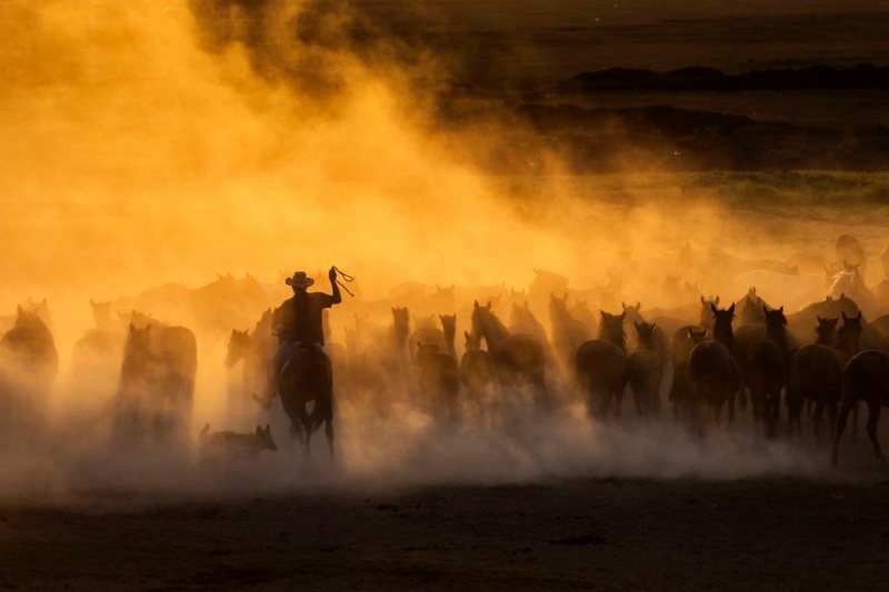 Fotoğraflarda gördüğünüz kovboy sürünün sahibi ve bize atları nasıl yönettiğini gösterdi.