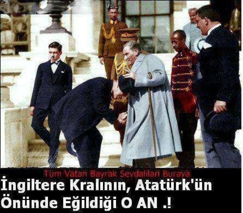 İngiliz Kralı Atatürk'ün elini öptü mü? Fotoğrafın çekildiği tarih 24 Temmuz 1927 tarihidir. Ve bu tarihte Türkiye'ye bir İngiliz Kralı gelmemişti, böyle bir temas da söz konusu değildir. Bunun yanında İngilizler saygıdan dolayı el öpmezler, nezaket gereği yalnızca kadınların eli öpülür. Ek olarak siyah beyaz olarak çekilen fotoğrafın renklendirmesini gerçekleştiren Ateş Akkor ve Engin Gökdeniz fotoğraftaki kişinin sıradan biri olduğunu ifade etmişlerdir. Gerçek görüşme ise 1936 yılında tüm diplomatik protokollerin tatbik edilmesi ile Kral Edward ve Atatürk arasında gerçekleşti.