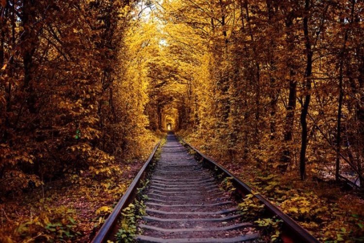 AŞK TÜNELİ (UKRAYNA) Belki de ağaç tünellerinin en ünlüsü olan Aşk Tüneli mevsimine göre ya yemyeşil oluyor ya da sarı tonlarına bürünüyor. Her iki türlü de ziyaretçilerine muhteşem bir görsel şölen sunan tünelin içinden geçen bir de tren yolu var. Efsaneye göre gerçek aşıkların bu tünelde tuttuğu her dileğin gerçekleştiği söyleniyor.