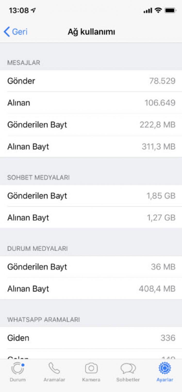 Bugüne kadar Whatsapp'ta gönderdiğiniz ve aldığınız tüm mesajların sayısına kadar ayrıntılı rapora ulaşabiliyorsunuz.