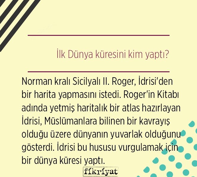 Günümüzde kullanılan dijital kameranın yolunu açan, ''Karanlık oda deneyini'' İbnü'l Heysem'in yaptığını biliyor muydunuz? Ya da Leonardo da Vinci'nin el yazmasının, Bill Gates tarafından 48,4 milyon dolara satın alındığını? Sizler için 100 ilginç sorunun 100 doğru cevabını derledik.